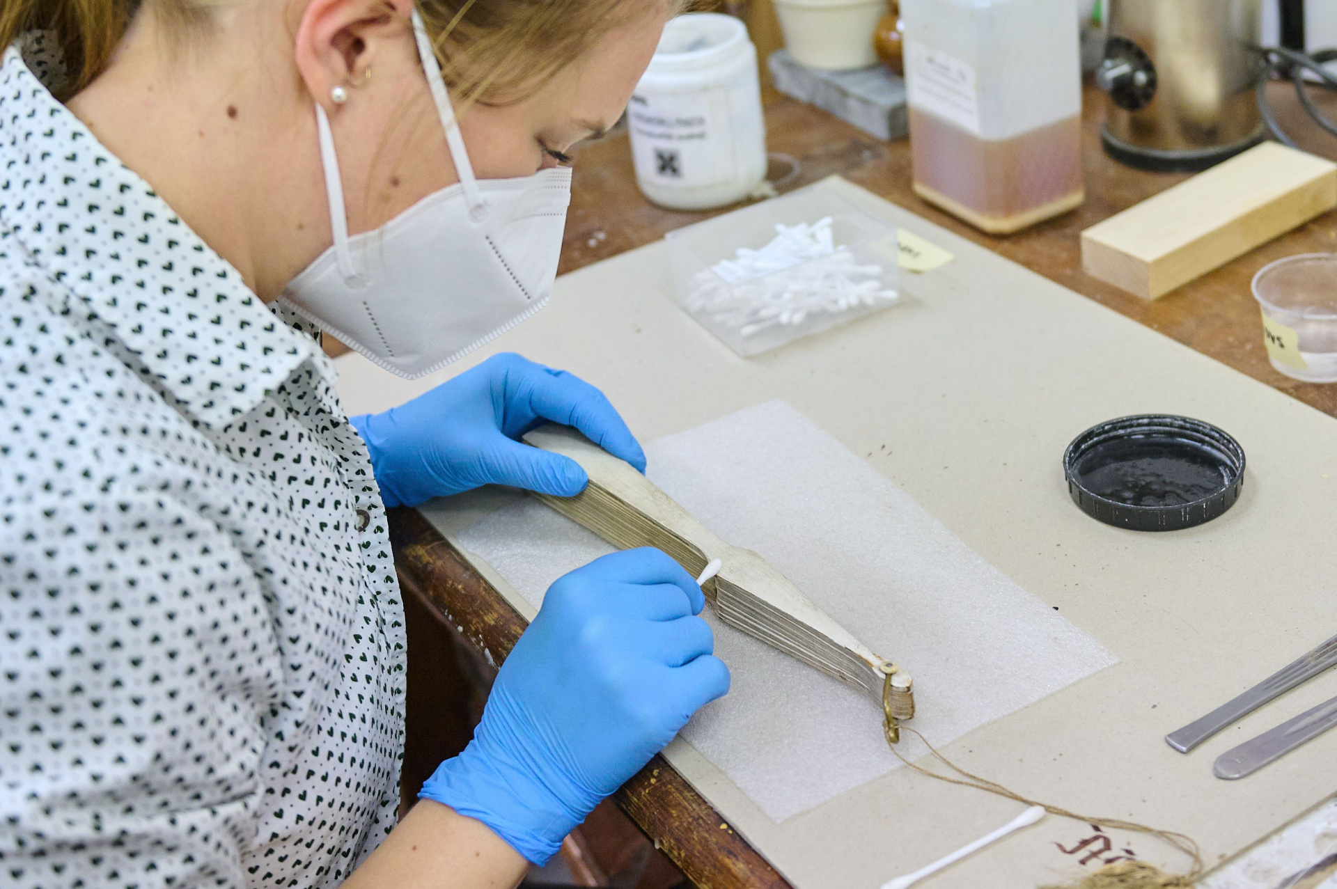 Zajišťuje stav sbírkových předmětů, ošetření a restaurování, uložení v depozitářích.