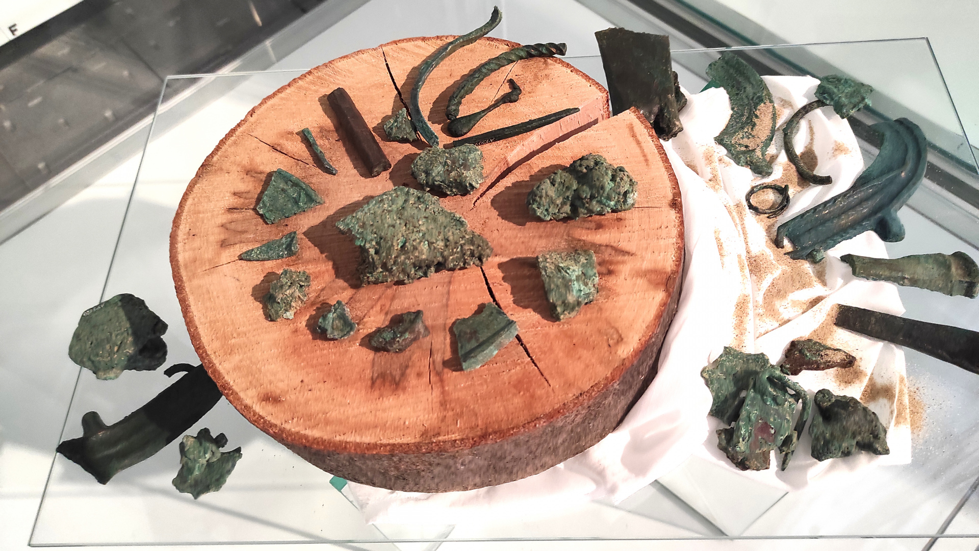 nálezy různých depotů ze starších období, například soubory bronzových ozdob, kamenné industrie